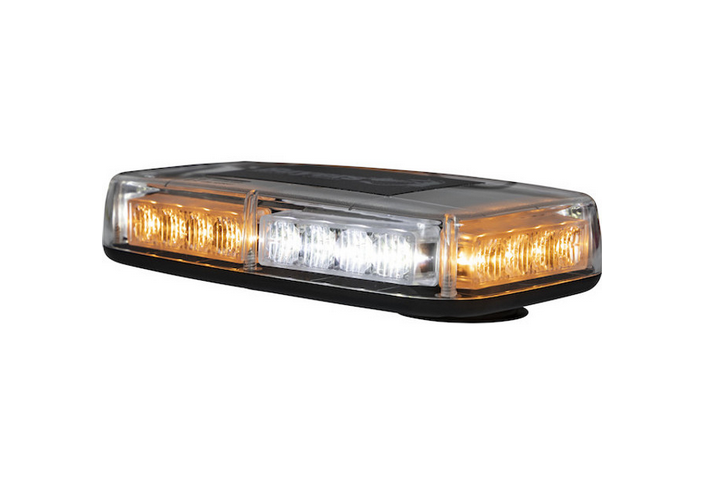 24 Amber/Clear LEDs 10 Selectable Flash Patterns Clear Lens (11"L x 6.5"W x 2.25"H) 12-24V @ 2.0 Amps (2) Dual Magnetic & Permanent Mounts 9.5' Cord w/Accessory Power Plug and Built-in Flash Pattern Selector