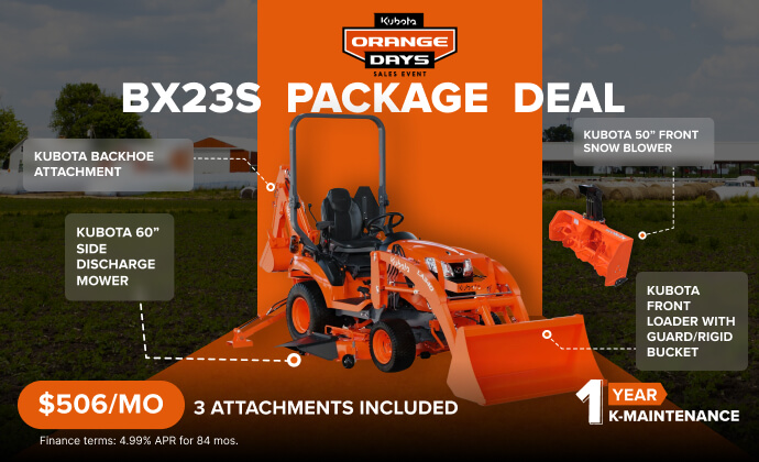 Kubota BX23S Package Deal – $506/Month!
