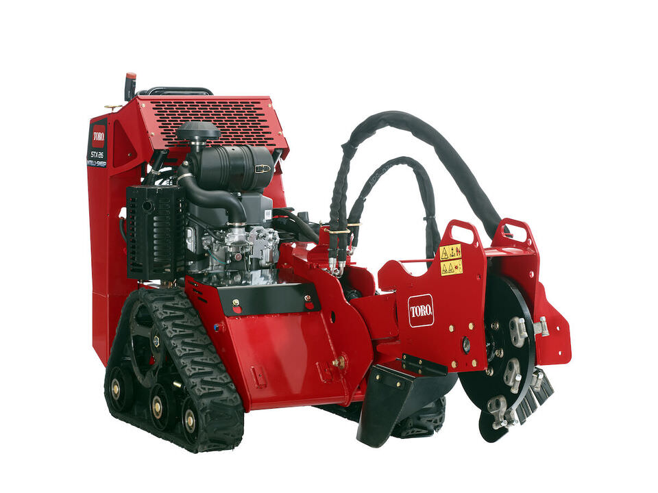 Some dedicated stump grinders are over-complicated. Not the Toro STX. Its patented Toro® Dingo® TX-style control system has two simple levers that are simple to learn, master and use. Combine these easy-to-use controls with tracks and transport speeds exceeding 4 mph, and you get maximum productivity. The Intelli-Sweep® feature automatically slows the sweep speed of the cutting head based on the load of the wheel, so heavy cutting loads won’t bog down the engine. The tracks travel easily over muddy areas, with the low center of gravity adds side hill stability for access to any job, in any condition. In addition, the hydraulically driven head means no chance of expensive belts breaking or slipping, and no adjusting tension - guaranteeing optimal performs time after time.